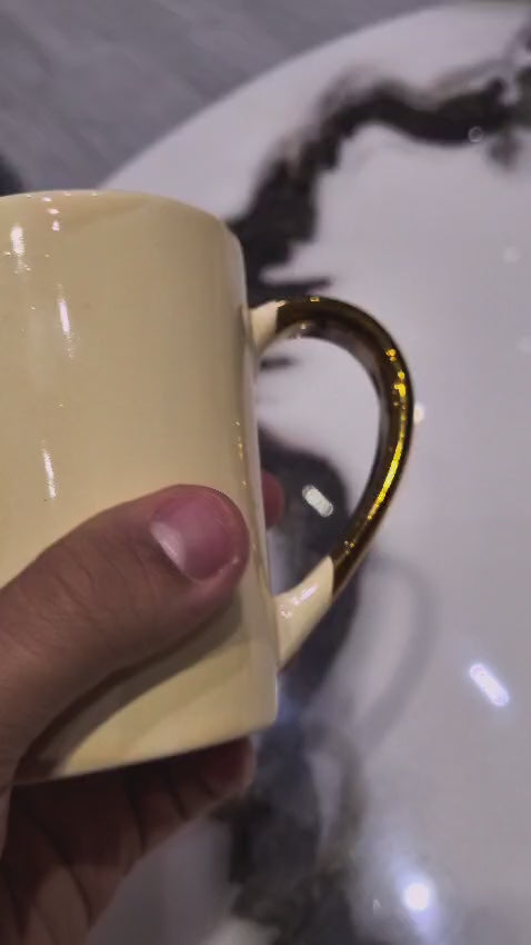 Start your morning ritual with this elegant Gold Milk Handel mug, designed for those who appreciate refined tableware. The lustrous gold finish adds a touch of sophistication to your daily beverage, whether you're enjoying milk, coffee, or tea. Crafted with durability in mind, this mug combines aesthetic appeal with practical functionality.