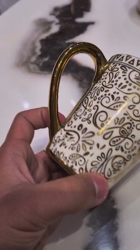 Start your morning ritual with this elegant Gold Milk mug, designed for those who appreciate refined tableware. The lustrous gold finish adds a touch of sophistication to your daily beverage, whether you're enjoying milk, coffee, or tea. Crafted with durability in mind, this mug combines aesthetic appeal with practical functionality.